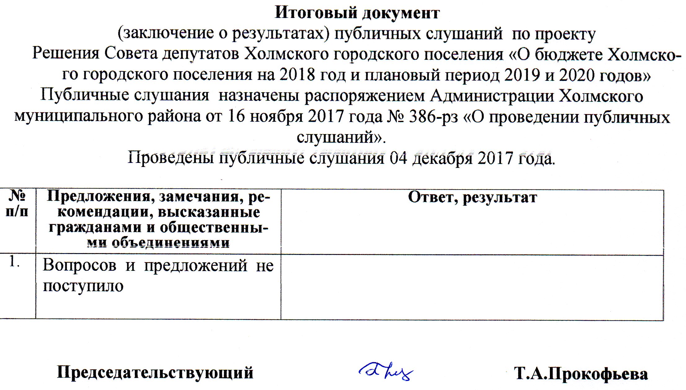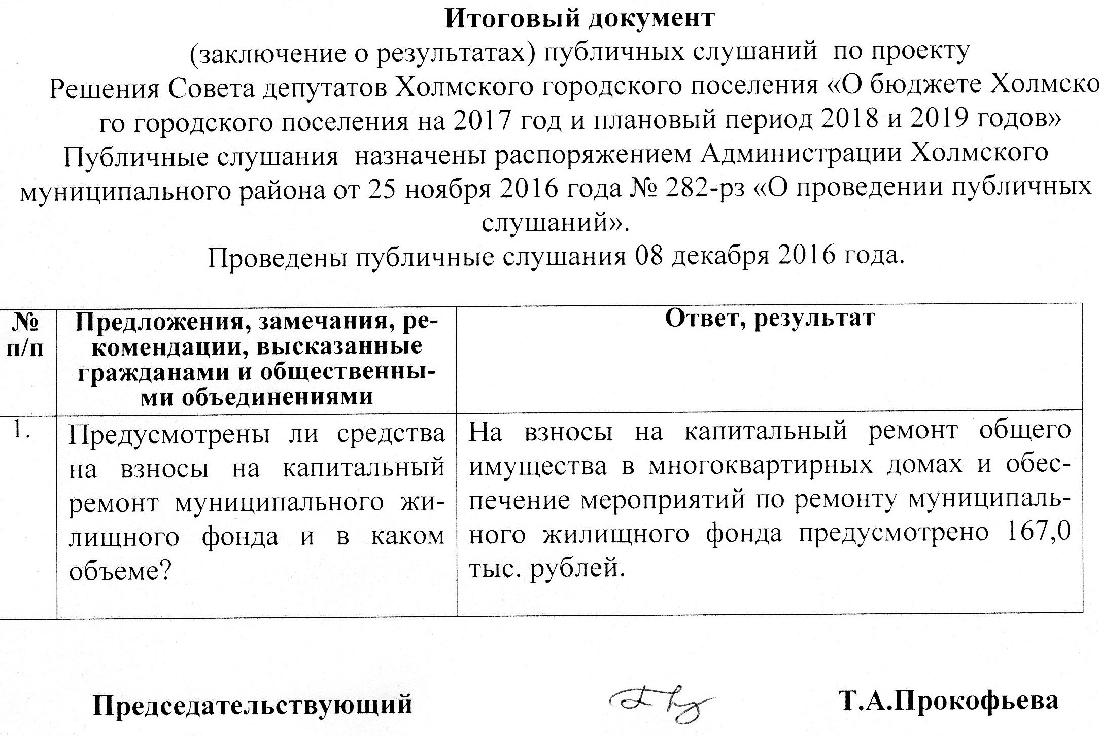 (заключение о результатах) публичных слушаний по проекту Совета депутатов Холмского городского поселения "О бюджете Холмского городского