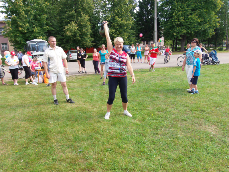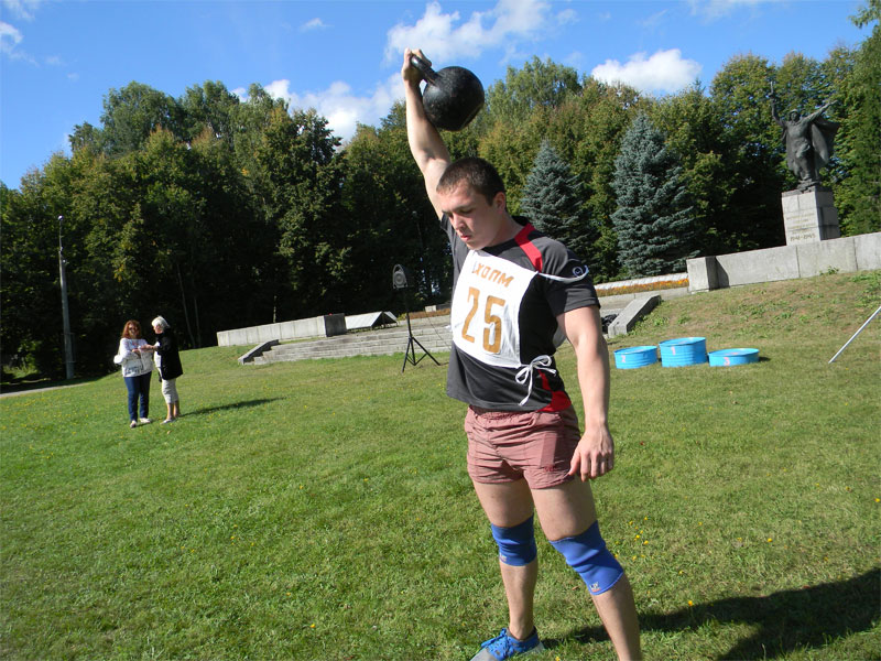гиря, стрельба из пневматической винтовки, отжимание из положения лежа, пресс, бег - 60 м. По итогам соревнований, в возрастной