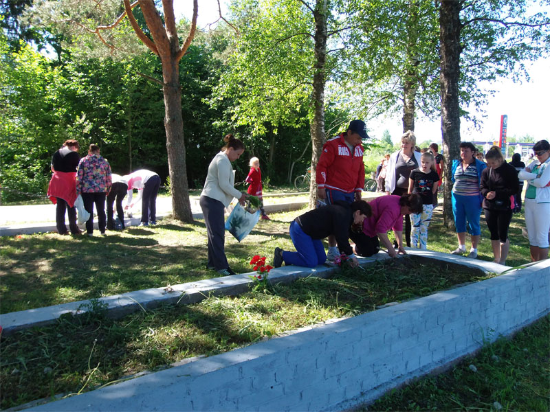 Маршрут велопробега: площадь Победы - воинское захоронение п. Первомайский. На воинском захоронении были посажены цветы, убран