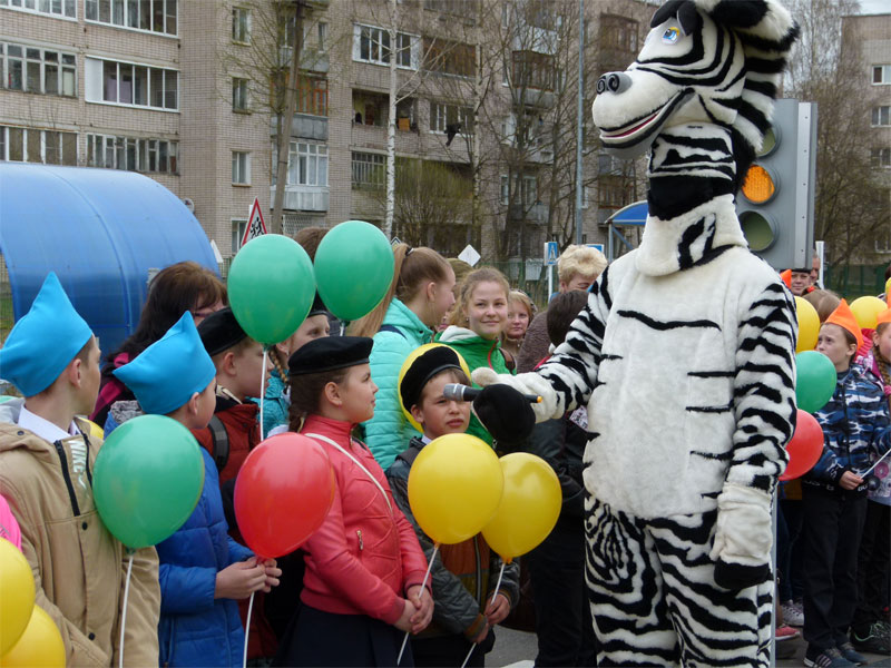 шар. К команде каждого района подходила "Зебра" и ребята произносили свой девиз. Затем ЮИДовцы произнесли клятву участников соревнований. Затем руководство
