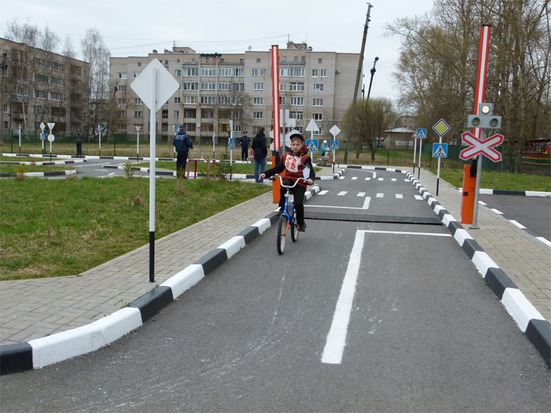 пешеходных переходов, имитации железнодорожного переезда, перекрёстков с круговым и Т-образным движением); станция 4 "Фигурное вождение велосипеда"